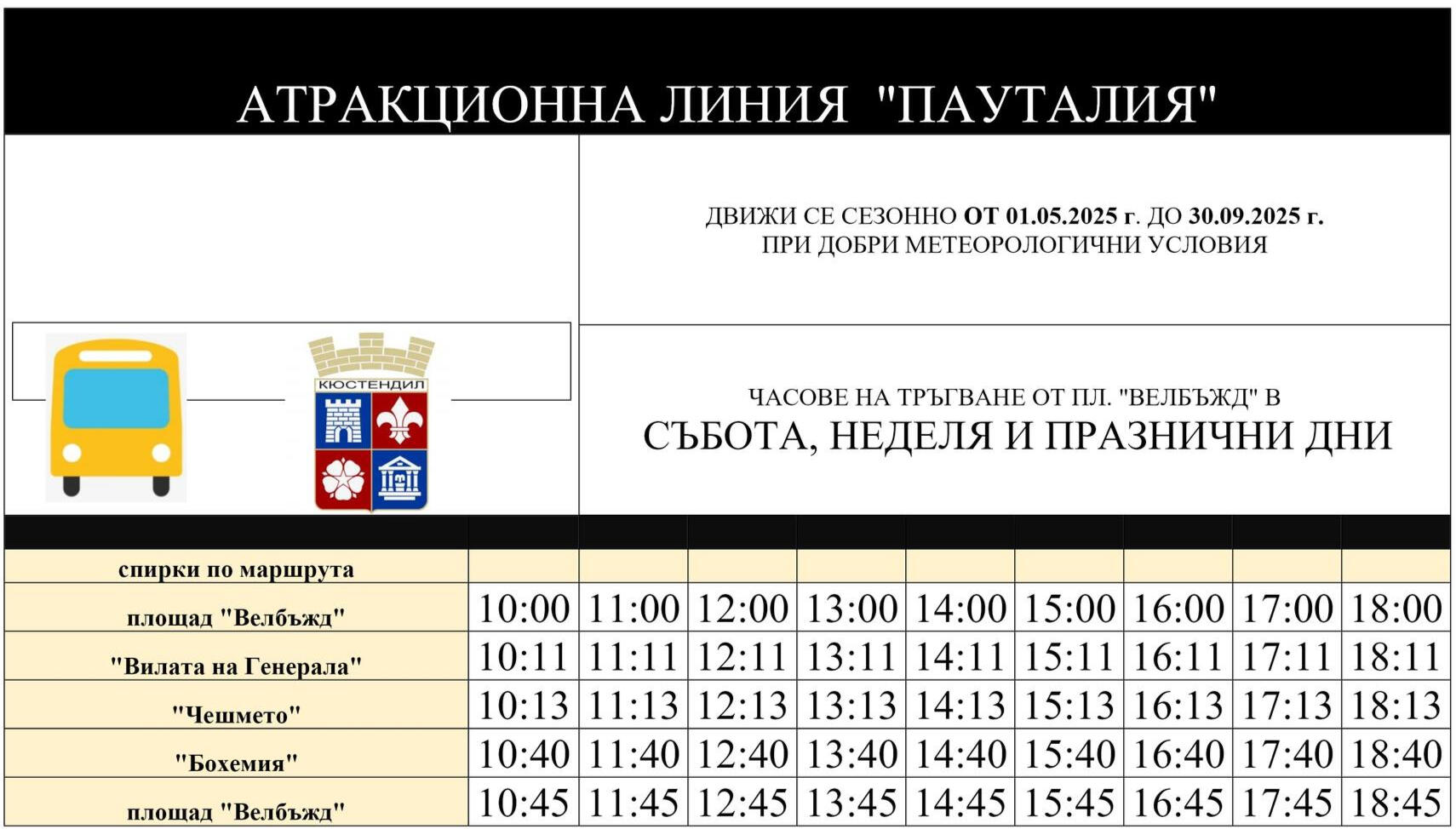Атракционна линия „Пауталия“ - Първият начин за стигане до лесопарк „Хисарлъка“, който ще ви представим е с атракционната линията „Пауталия“. Тя представлява открито бусче, което вози пътници до лесопарк „Хисарлъка“ и обратно на всеки кръгъл час, всяка събота и неделя, както и през празничните дни, през топлите месеци на годината. Цената на билет за деца в една посока е 2 лева, за възрастни - 3 лева.