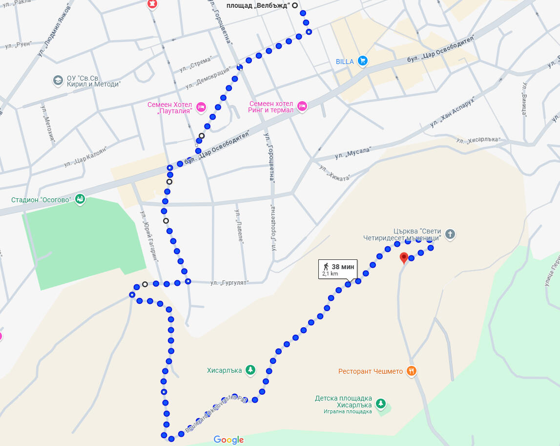 Кюстендил – Лесопарк „Хисарлъка“ – Пътека на здравето – Алея на любовта